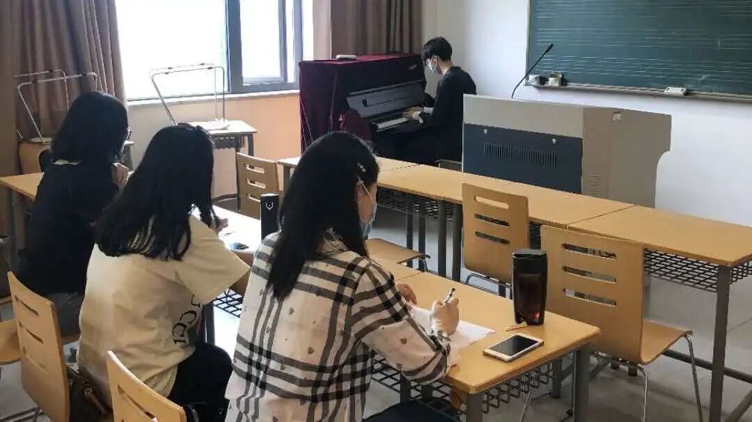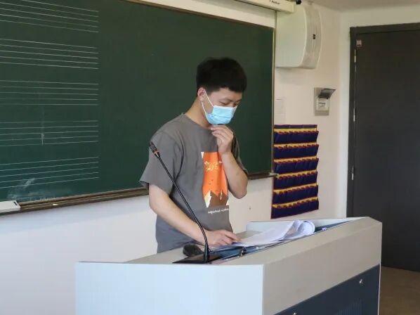 舞蹈编创、即兴编舞考场 (评委:黄德俊、程龙、马佳宏) 民间舞考场 (评委:杨旭东、郑洁、李子、钟冰洁、曹端丹) 即兴伴奏考场 (评委:严隽文、李怡雯、刘恒言) 声乐考场 (评委:刘肖佳、黄珊、石琰珺) 5月20日下午,全体毕业生分成4组分别在A216、A218、A219、A220会议室进行本科毕业论文答辩,其中2位因疫情原因无法到现场的毕业生进行了线上答辩。 考虑到疫情尚未结束,所有会议室都进行开窗通风,老师们都自觉佩戴口罩,同时为避免学生聚集,每次只允许一名学生进入场内。 为了将疫情的影响降到最低,舞蹈系经过前期调研,综合各方面因素,调整了考试、论文答辩等相关工作的日程安排,在返校后2周内将毕业生相关工作顺利完成。